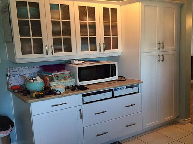 - We will often take all of the doors and drawers fronts off-site to our specialized facility to have them sprayed.